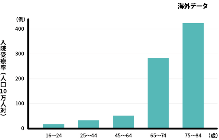 また、元気なようでいても、65歳を過ぎると「市中肺炎」による入院例が多くなることが、調査でわかっています。