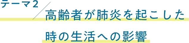 肺炎を起こして、症状が治って、退院はできたけど、「今までご自身ができていたことができなくなる・・・」、ここが肺炎の大きな問題だと思います。