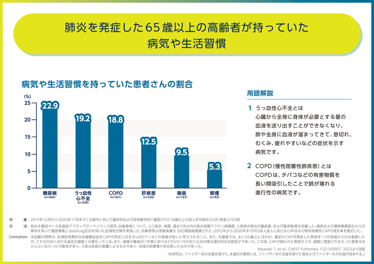ここに示すように、糖尿病やうっ血性心不全、COPD、肝疾患、喘息などの病気を持っていたり、喫煙の習慣がある方は、気をつけた方がいいと思います。